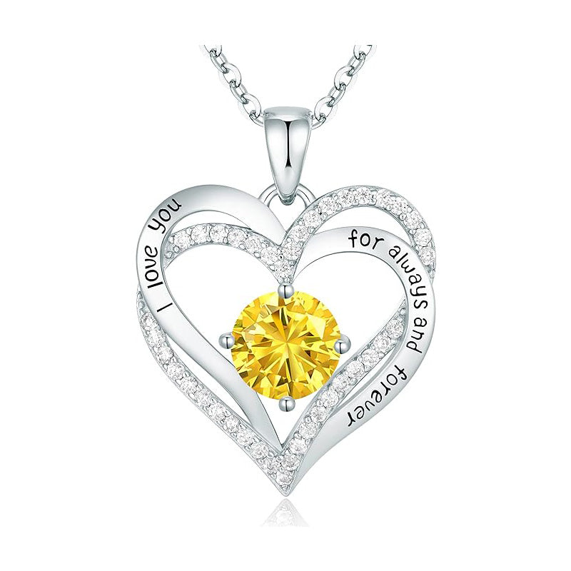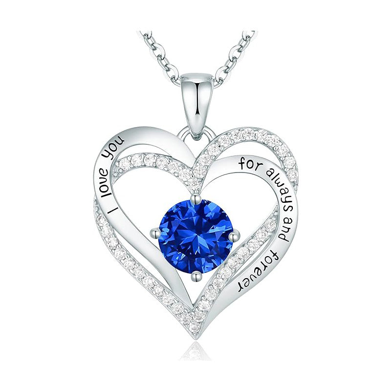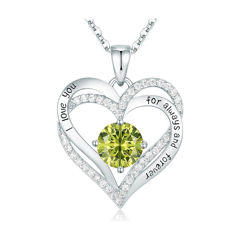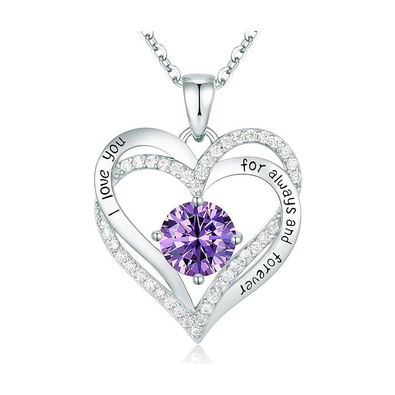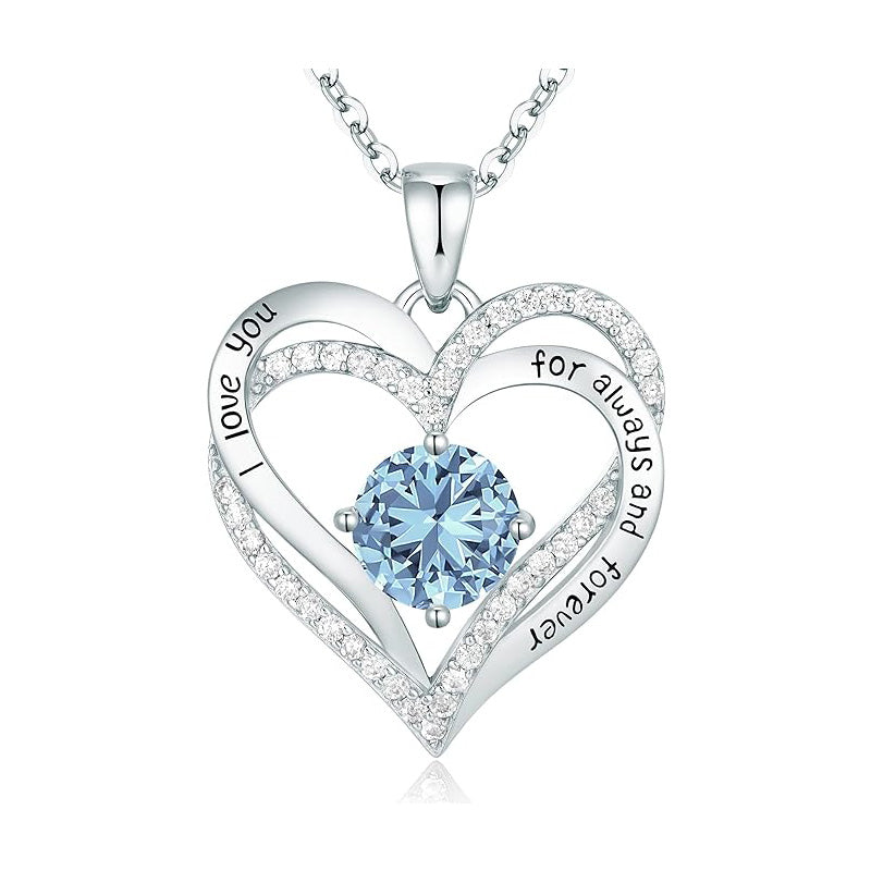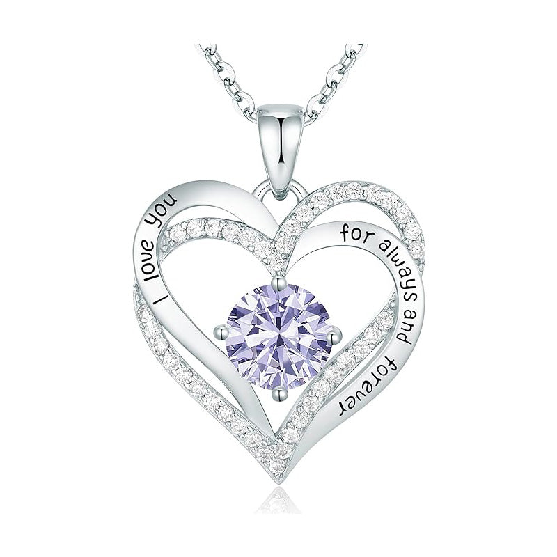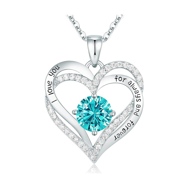 925 Sterling Silver Birthstone Heart Necklace - Personalized Monthly Gemstone Jewelry for Women