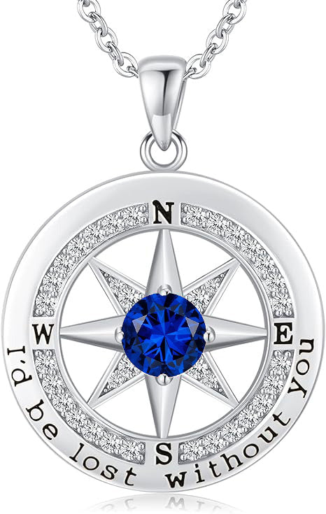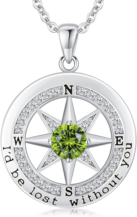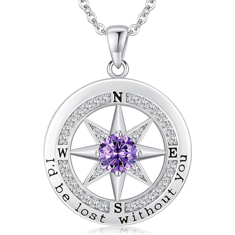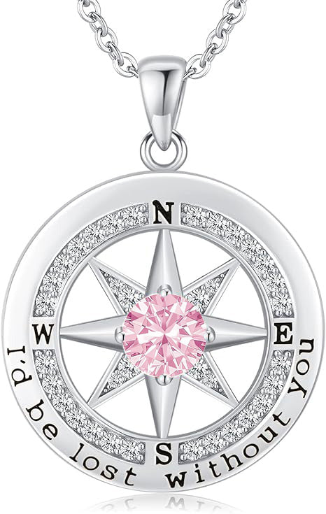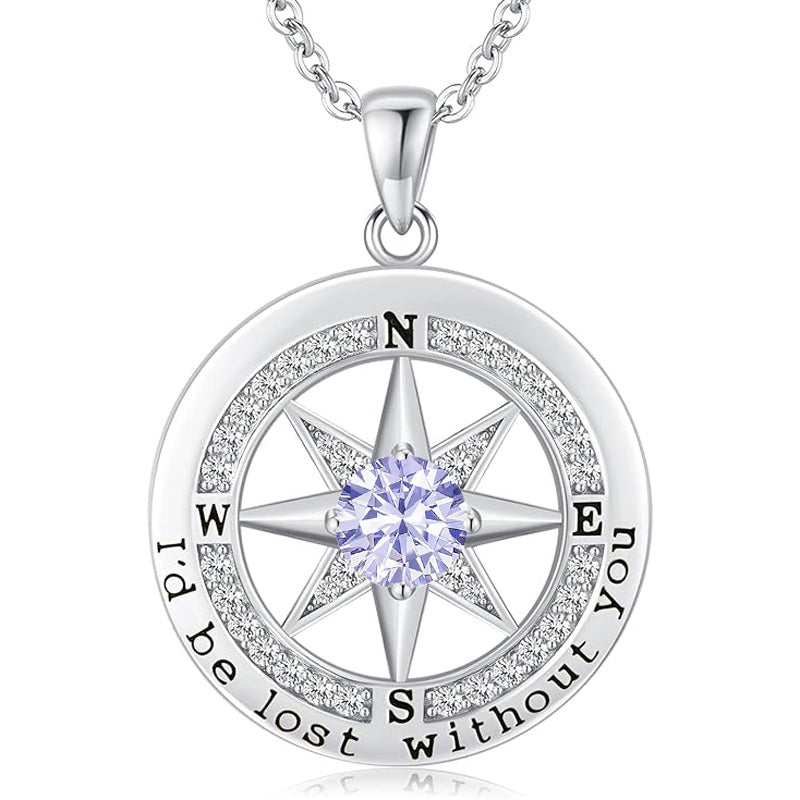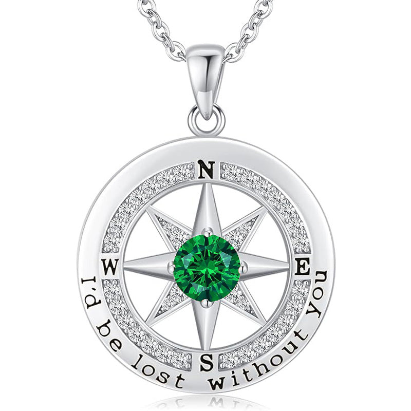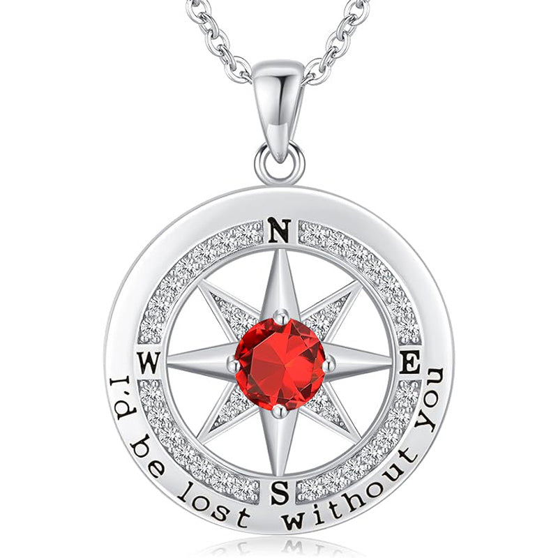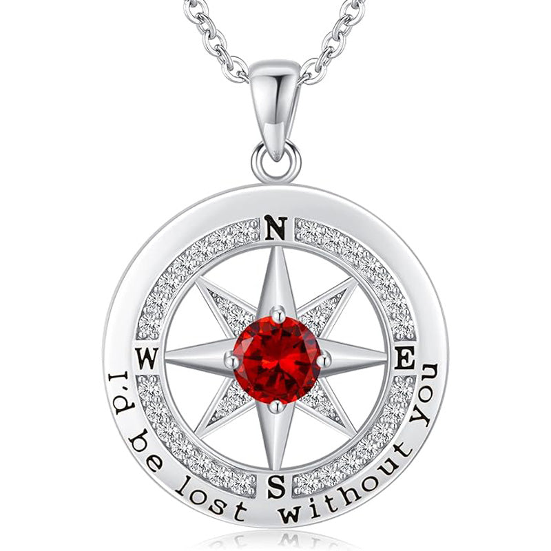 Personalized 12 Birthstone Compass Necklace | 925 Sterling Silver with Gold/Rose Gold/White Gold Plating + Zircon, Birth Month Jewelry for Women, Ideal Birthday Gift